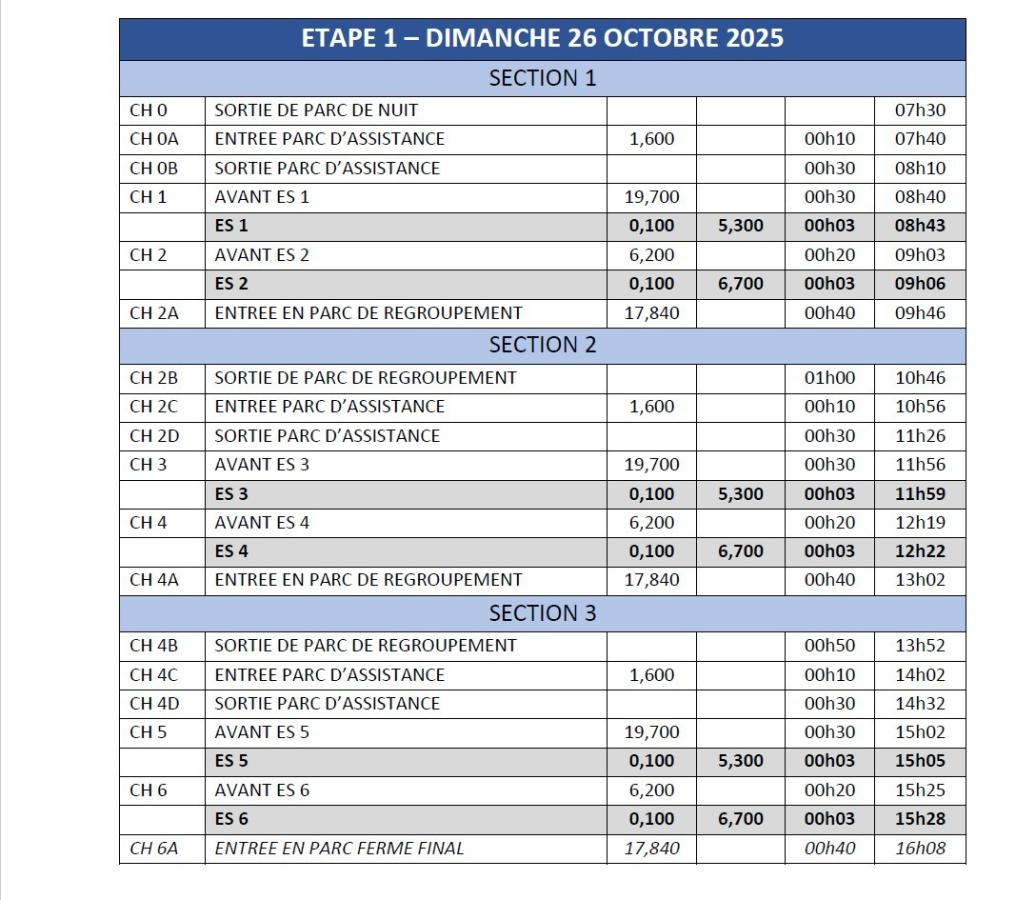 | Départ du Rallye | DIMANCHE 26 OCTOBRE 2025 | 07h30 | ||